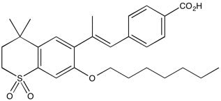 Ro 41-5253 (144092-31-9) is a selective RARα antagonist.1 Binds RARα without inducing transcription or influencing RAR/RXR heterodimerization and DNA binding.2 Ro 415253 inhibits proliferation and induces apoptosis in a variety of cell lines/types. Cell Permeable.